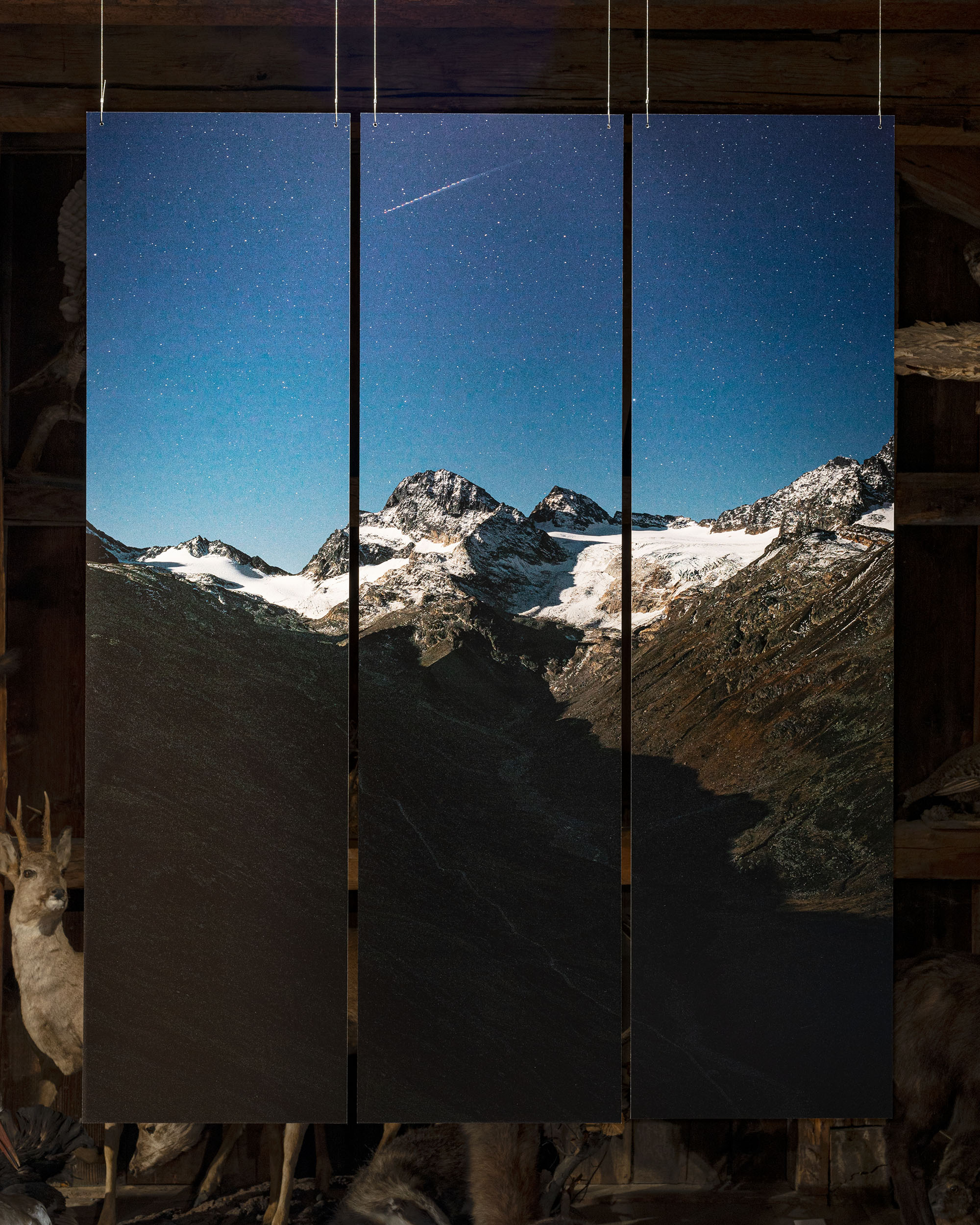 The project developed from an invitation by Roland Haas to contribute to the group show „Vom Schmelzen und Schwinden“ [on melting and waining] at Kunstforum Montafon. In collaboration with Montafoner Museen, a mixed-media installation has been presented at Heimatmuseum Schruns from June 2022 to March 2023 as a satellite venue for the group show.