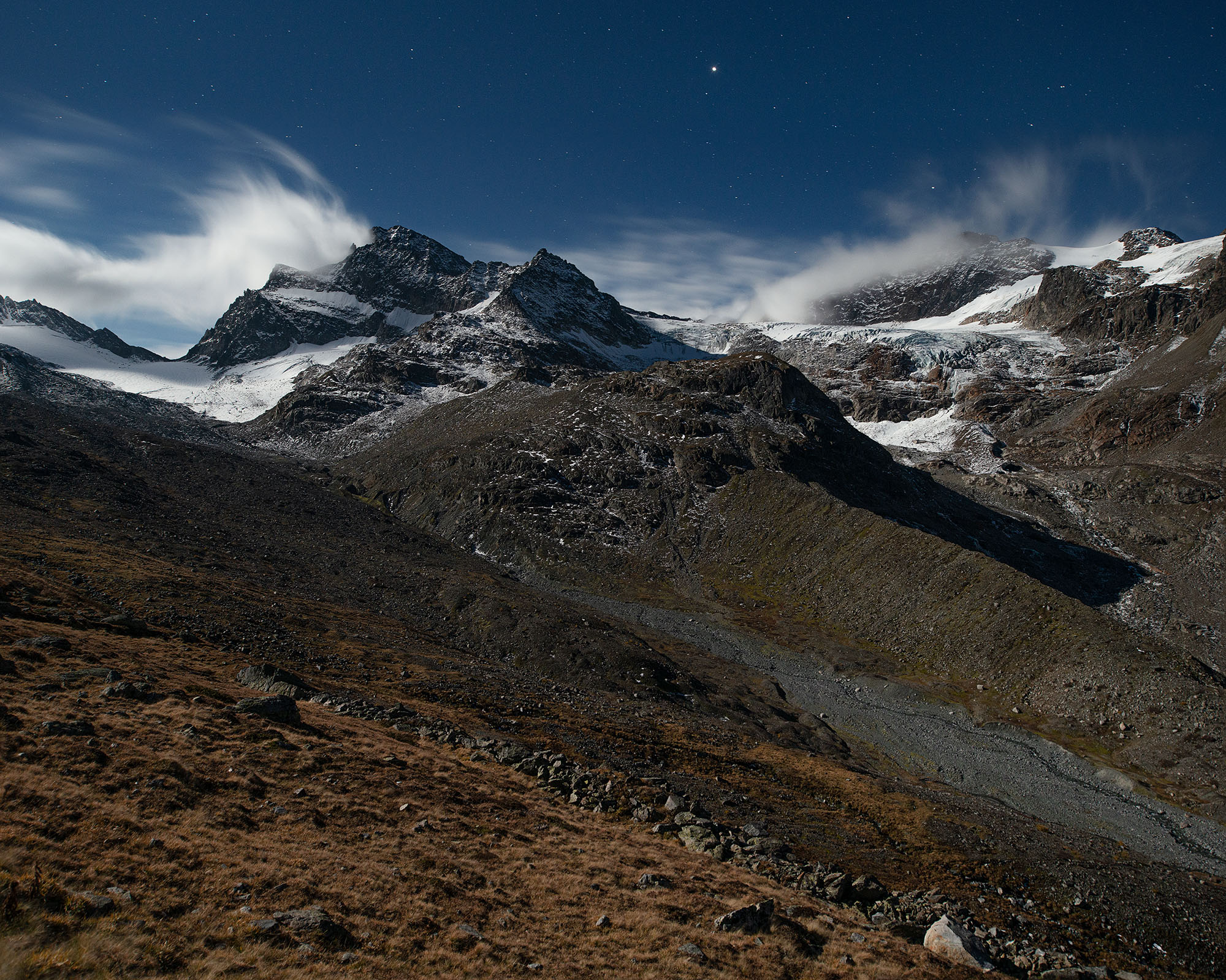 Since their Little Ice Age maximum, all glaciers of the region have receded dramatically and have often broken into smaller, separate entities. So did Vermuntferner and Ochsentaler Gletscher featured in my photographs from 2021.