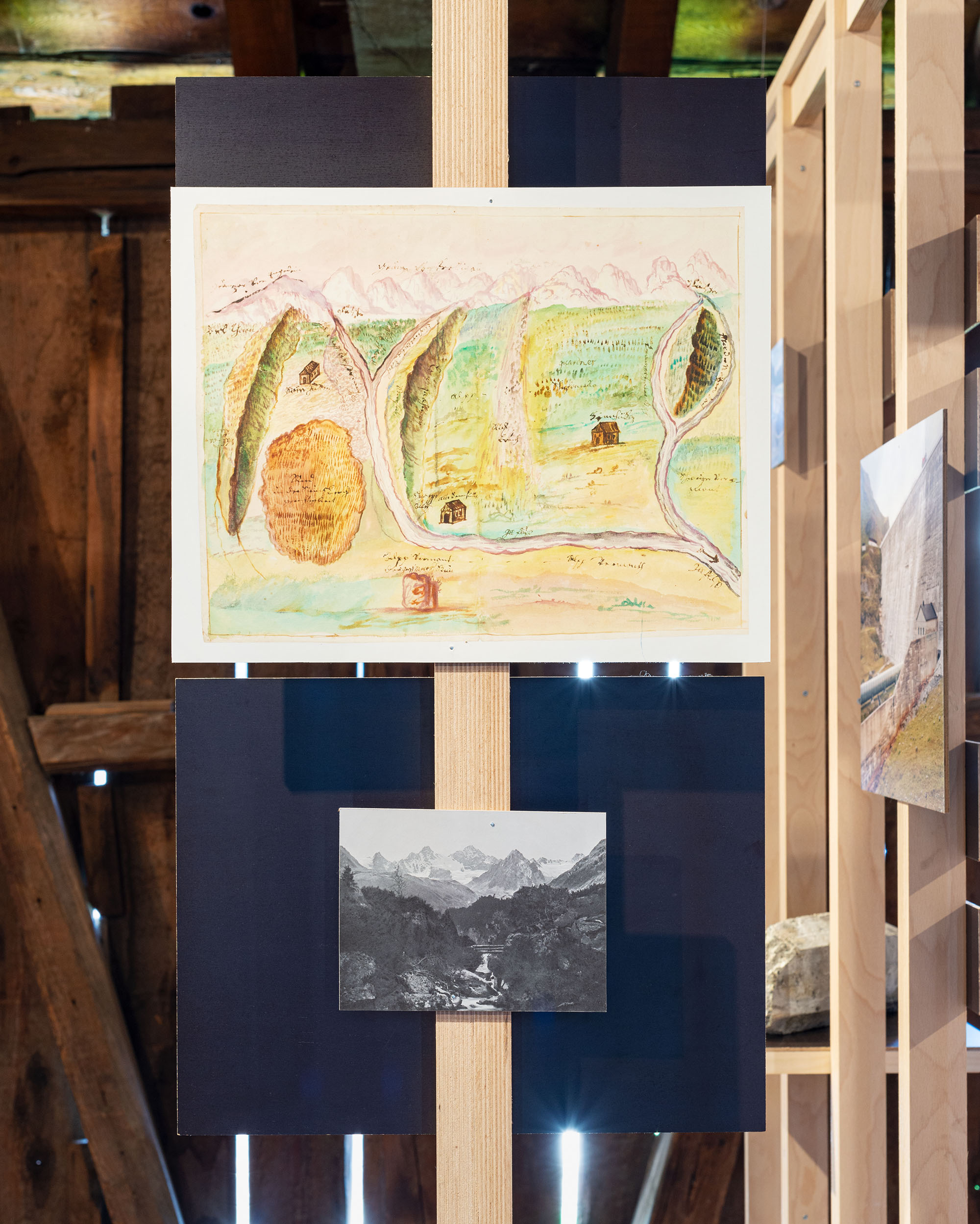 Many historical elements of the installation derive from his research and, very often, his private collection. Silvretta Historica (2013) by Dr Michael Kasper (Montafoner Museen) has been another important source of information for this project.